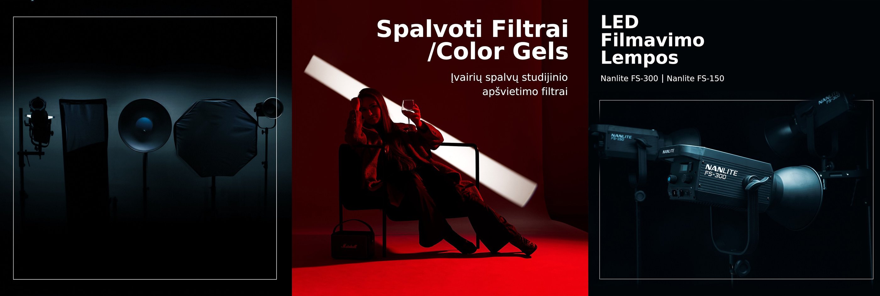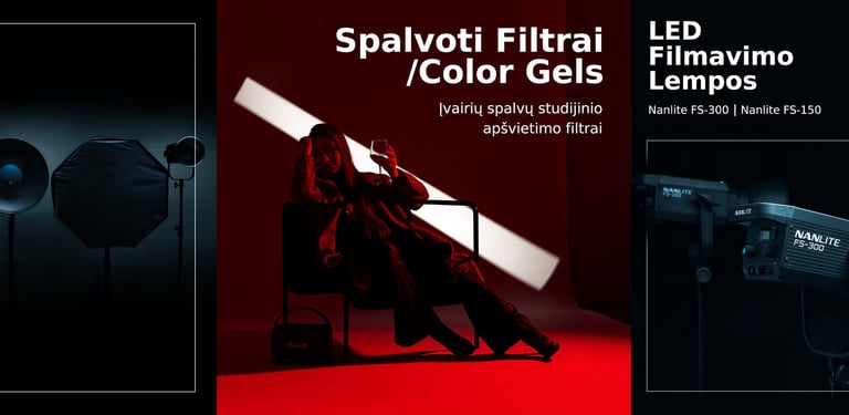 Profesionali Elinchrom ir Nanlite įranga su viskuo, ko gali prireikti:: šviesdėžės, stovai, reflektoriai ir daugiau.